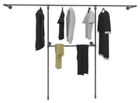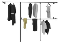 Übersichtlich hängt die Kleidung in den offenen Kleiderschränken aus stabilem Stahlrohr, als Einzelmöbel, begehbarer Kleiderschrank oder als System fürs Ankleidezimmer. Geliefert als fertig konfektionierte Bausätze mit Aufbauanleitung. Die Bauteile sind transparent gewachst für unverfälschtes Rohrdesign. Hoch belastbar mit über 100 kg durch Material nach hiesigen Industriestandards.