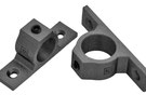 Zweilaschige Rohrschelle zur Befestigung von Rohren an Regalböden. Die 2-laschigen Schellen sind weniger stark und damit etwas dezenter in der Optik als die 1-laschigen.